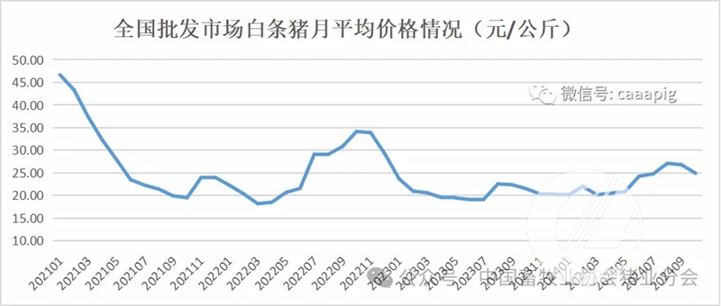 4、2024年10月份全国批发市场白条猪价格24.92元/公斤,环比下跌7.0%,同比上涨15.9%。
