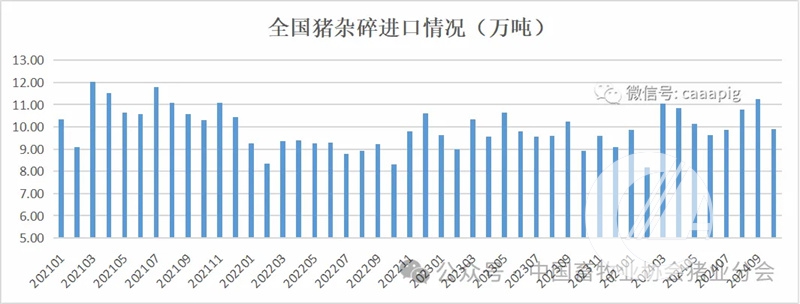 2、2024年10月进口猪杂碎9.89万吨,环比下降12.2%,同比增长10.7%。