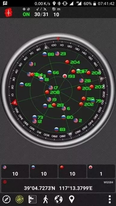 结果是搜到10颗GPS,10颗GLONASS,10颗北斗,都参与了定位,搜到一颗日本的QZSS,解出了方位角仰角,没有用来定位,所以说啊,北斗离你一点也不远,只要用手机的位置服务,导航也好,找附近的外卖也好,北斗都在参与其中……